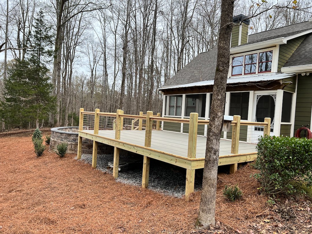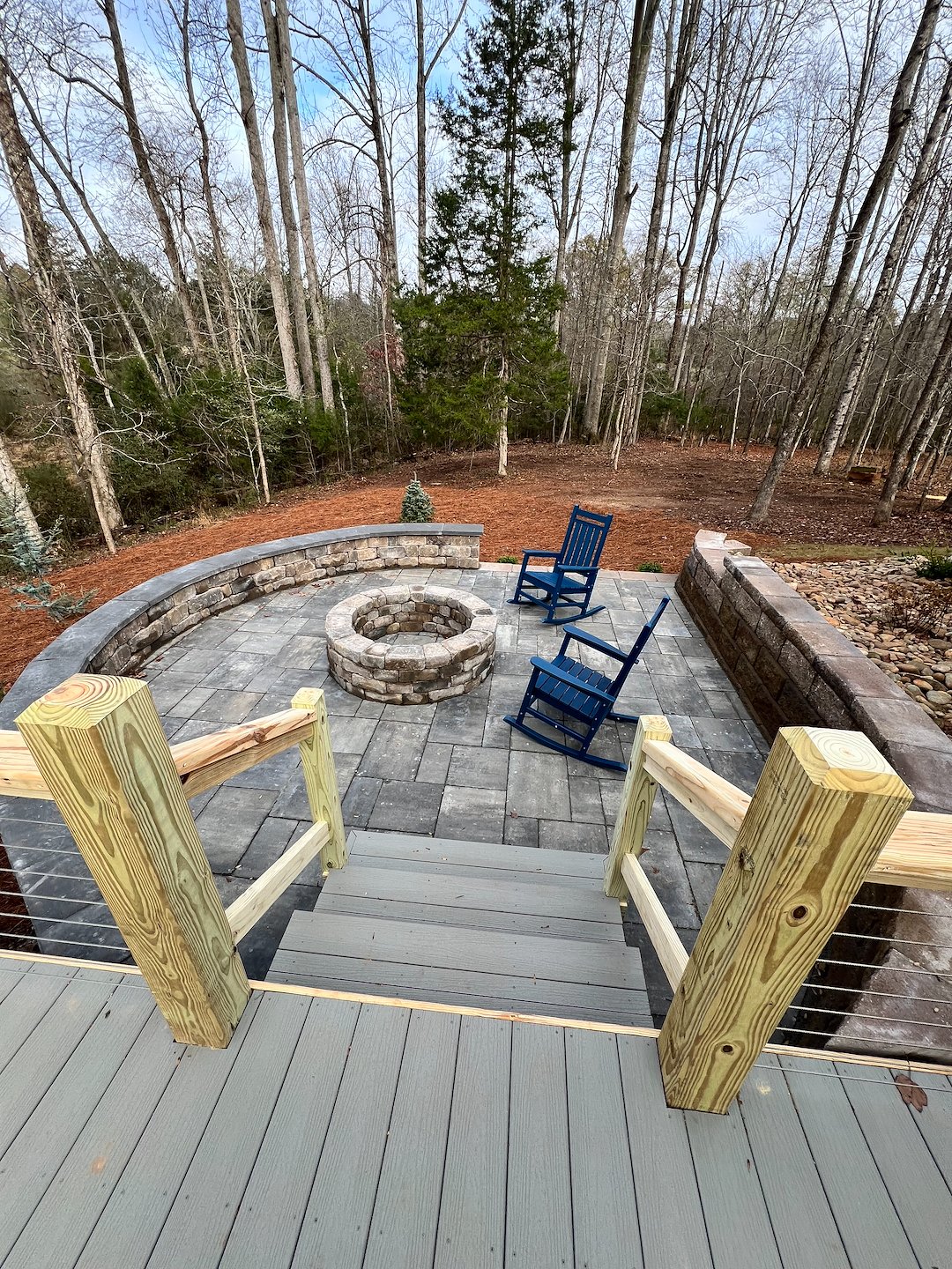 Outdoor Living Upgrade: Paver Patio, Retaining Walls, Fire Pit & Custom Deck In Good Hope GA